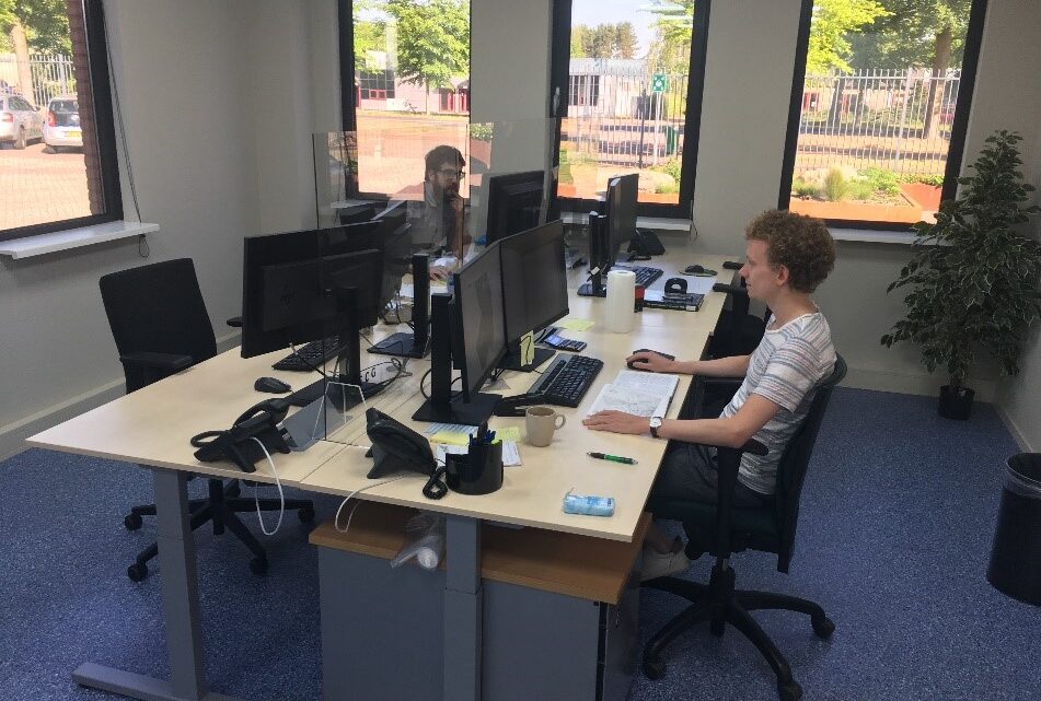 De coronacrisis en de bijbehorende restricties zijn nu alweer een aantal maanden van kracht. Gedurende deze periode heeft ECG de benodigde maatregelen getroffen om toch op een verantwoordelijke manier verder te kunnen werken. Dit doen wij door het instellen van een coronarooster waarbij er een maximum aantal arbeidsplaatsen zijn ingericht. Hierdoor wordt thuiswerken zo veel mogelijk gestimuleerd. Daarnaast zijn tussen de bureaus beschermplaten en langs de wandelpaden in het gebouw desinfectiezuilen geplaatst. Dit alles maakt dat ECG ondanks deze ongebruikelijke periode toch de werkzaamheden mag voortzetten en dit gelukkig op een verantwoorde manier kan blijven uitvoeren.